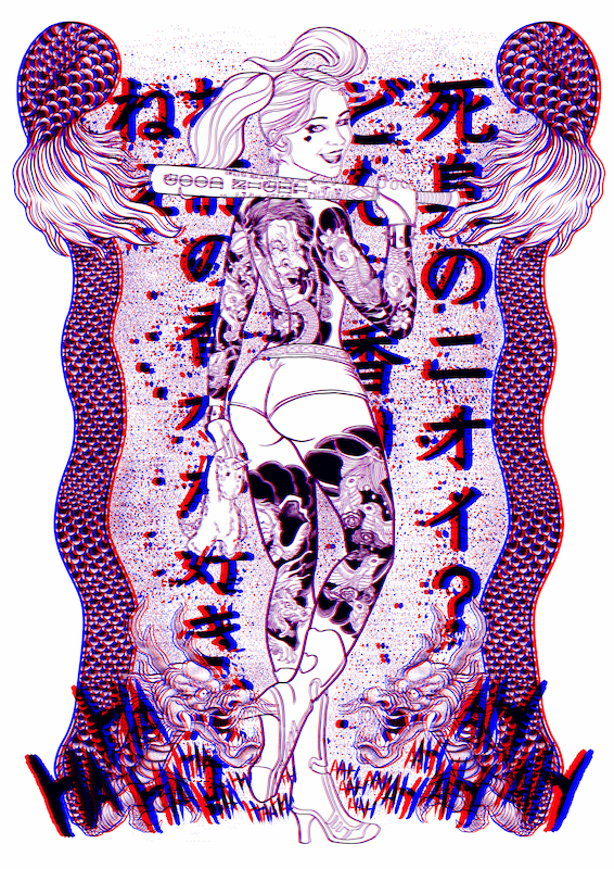 本次的經典物語-紅藍3D特展,顧名思義展品是由3D效果海報為主體,搭配1982小時候-過去X現在的概念,由每一位藝術家對於80年代自身所經歷的文化,舉凡:刺青、港漫、時尚、電影等多種角度去發想並實踐在每一幅畫作上的展覽。
