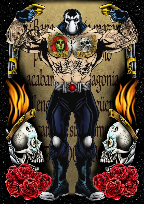 作品中以班恩這個漫畫中擁有健美身材的頭號罪犯來與墨西哥幫派組織做連結,從腹肌上的文字能看到這個黑幫首領-班恩的名字,在黑幫刺青的文化中,可以看到他們會將自己的幫派名稱刺在腹部,以表示忠誠與榮耀的一種象徵意義,就像海賊王中艾斯背後的白鬍子海賊團刺青那樣。
