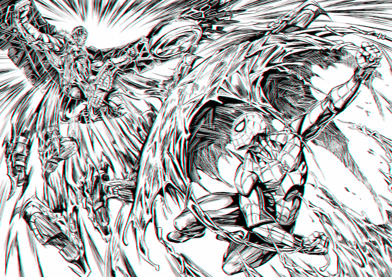 但功夫說穿了就是見招拆招,既然有這種快到有殘影的招式,那麼總會有反制的手法,畫面中禿鷹那超越視覺到產生殘影的連續飛踢固然厲害,但蜘蛛人也不是省油的燈,蜘蛛絲防護罩的全面防禦更是堪稱一絕啊!而這樣的防護罩其實是借鏡於港漫武俠中「內勁聚氣成盾」,為靈感所發想出的招式。