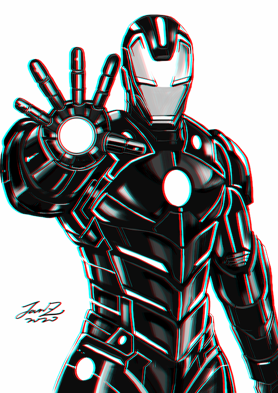 鋼鐵人,在電影中堪稱是集結了全世界所有最一流的尖端科技,所打造出來的最強兵器,擁有毀天滅地的能力,但電影的劇情描述上始終離不開最核心的史塔克,就像《電子爭霸戰》的凱文·費林在自己所創造的電子世界中,積極想從中央控制程式手中奪回主控權那樣,在鋼鐵人中,長期酗酒的史塔克被對手奧比戴亞·史坦用計偷走了自己一手創立的史塔克企業不謀而合。作品中的鋼鐵人特別以電子爭霸戰中的色澤、線條作為他鎧甲外型設計的主要靈感來源,藝術家就是想透過這種巧思來連結兩部電影中主角所擁有的心態與處境。