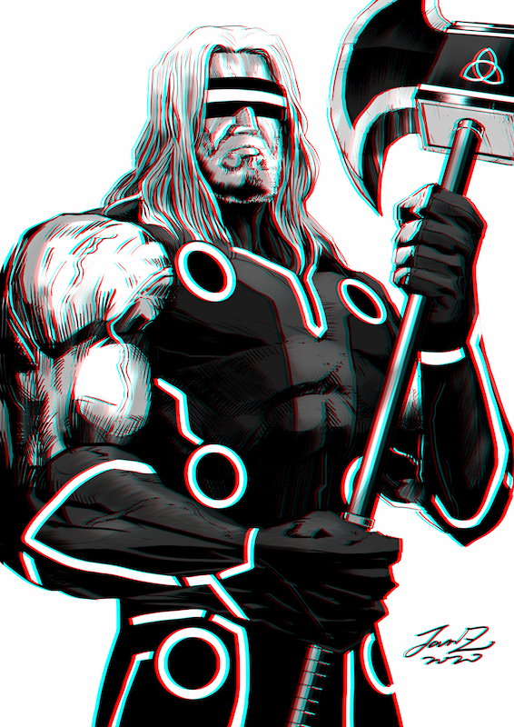 說到80年代的電影流行趨勢,請容我以科幻電影的角度來分析當時的狀態,當時雖然科技不像現在如此爆炸性的成長,早已完成許多過去僅僅出現在電影世界的科技。那是一個充斥著許多有趣想法的年代,我認為那是一個最適合用「有夢最美」來形容的年代,電影工作者負責造夢,科學家則負責實踐。當時推出的許多科幻片到現在看來仍然是堪稱經典的作品,例如:回到未來、機器戰警、阿基拉、變形金剛,還包含了這次的畫作靈感來源-電子世界爭霸戰,除了是一部相當有代表性的科幻片外,也正是2010年推出的科技大片《創:光速戰記》的前身,多數都是以酷炫的未來科技來包裹一些沉重、乏味的社會議題,相當值得一再回味呢。